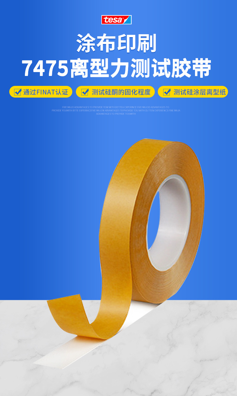 tesa德莎7475测试胶带粘合力可剥离性胶带不干胶硅涂层测试胶带