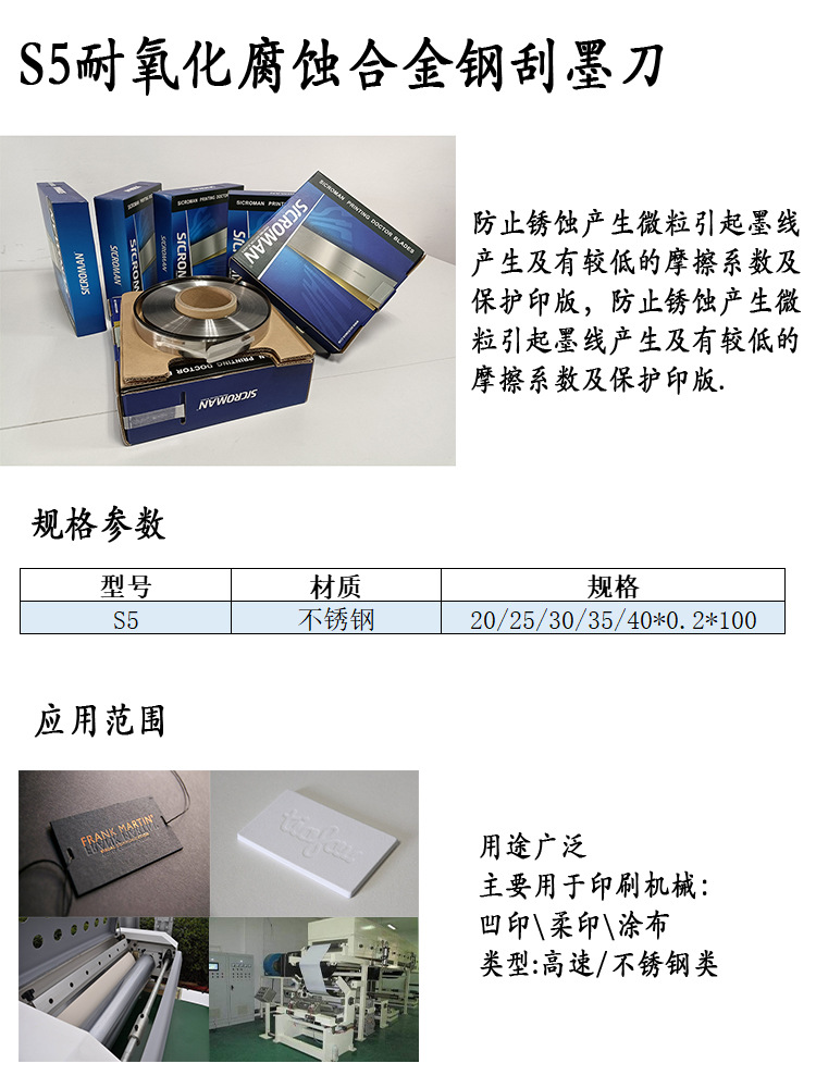 思可满凹印柔印涂布印刷机S5耐氧化腐蚀合金钢刮墨刀