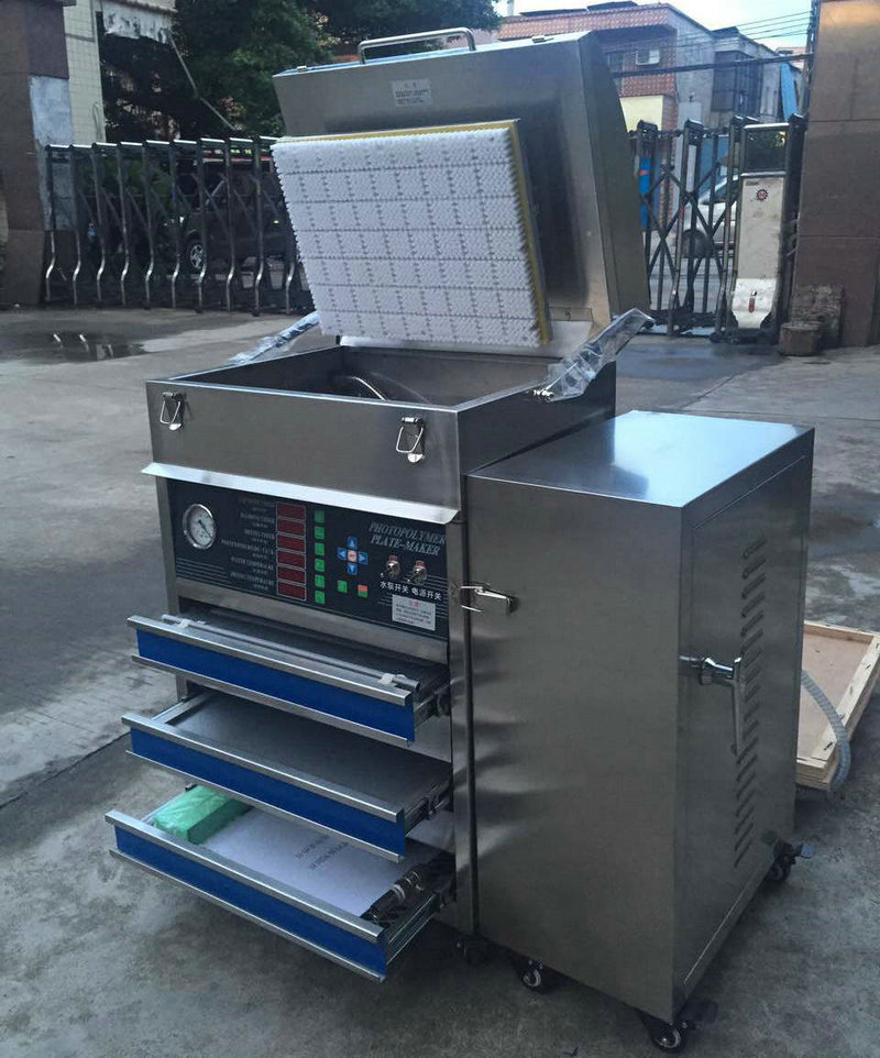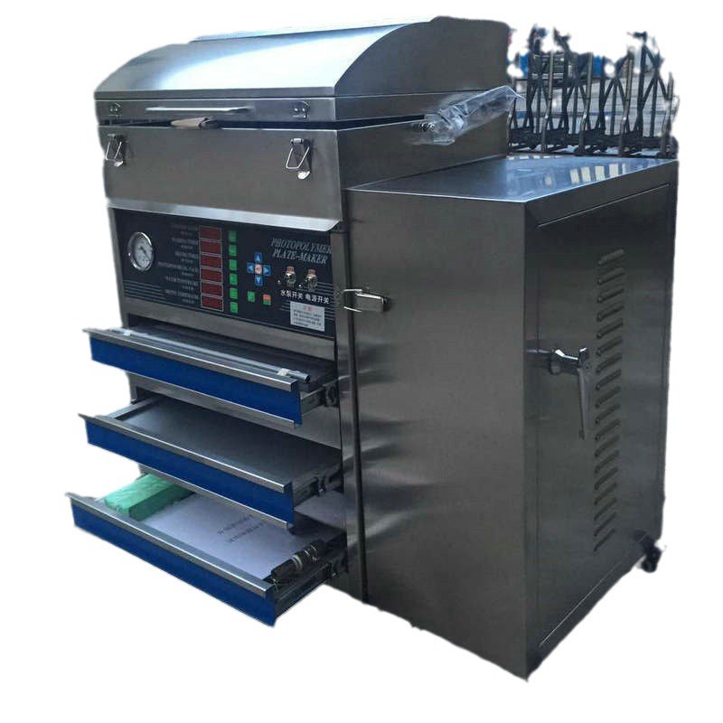 集曝光、洗版、烘干、后曝光多种功能于一体。微处理中央控制板,操作简便。 采用紫外线晒版UV灯管,专业AAA电子镇流器,让UV灯管发挥最佳状态,提高工作效率,灯管寿命更长;日本进口三菱真空膜,让紫外线穿透力更强、更均;进口自粘版材自动粘连洗版,方便作业。洗版毛刷采用上置方式,洗版水由上往下喷淋洗版延长毛刷使用寿命,洁版更合理。 独立水箱智能加热恒温系统,洗版水循环、过滤,烘箱热风恒温烘干,符合印版制作要求。 全采用不锈钢加工工艺,确保机身刚性及耐用。 高精度真实完美再现图文。